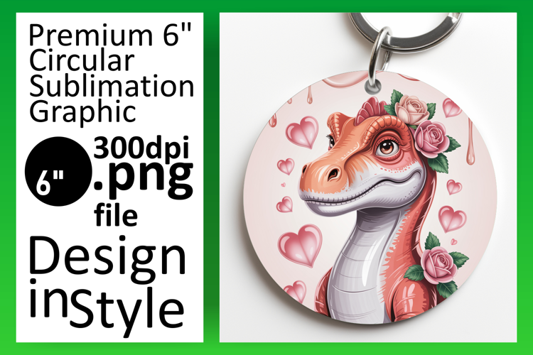 Dynamic Keychain Round Design PNG , Cute Dino example image 1