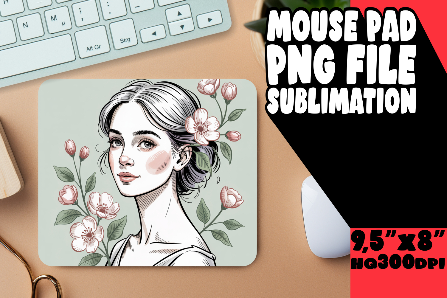 Playful Mouse Mat Sublimation PNG, Beauty Woman example image 1