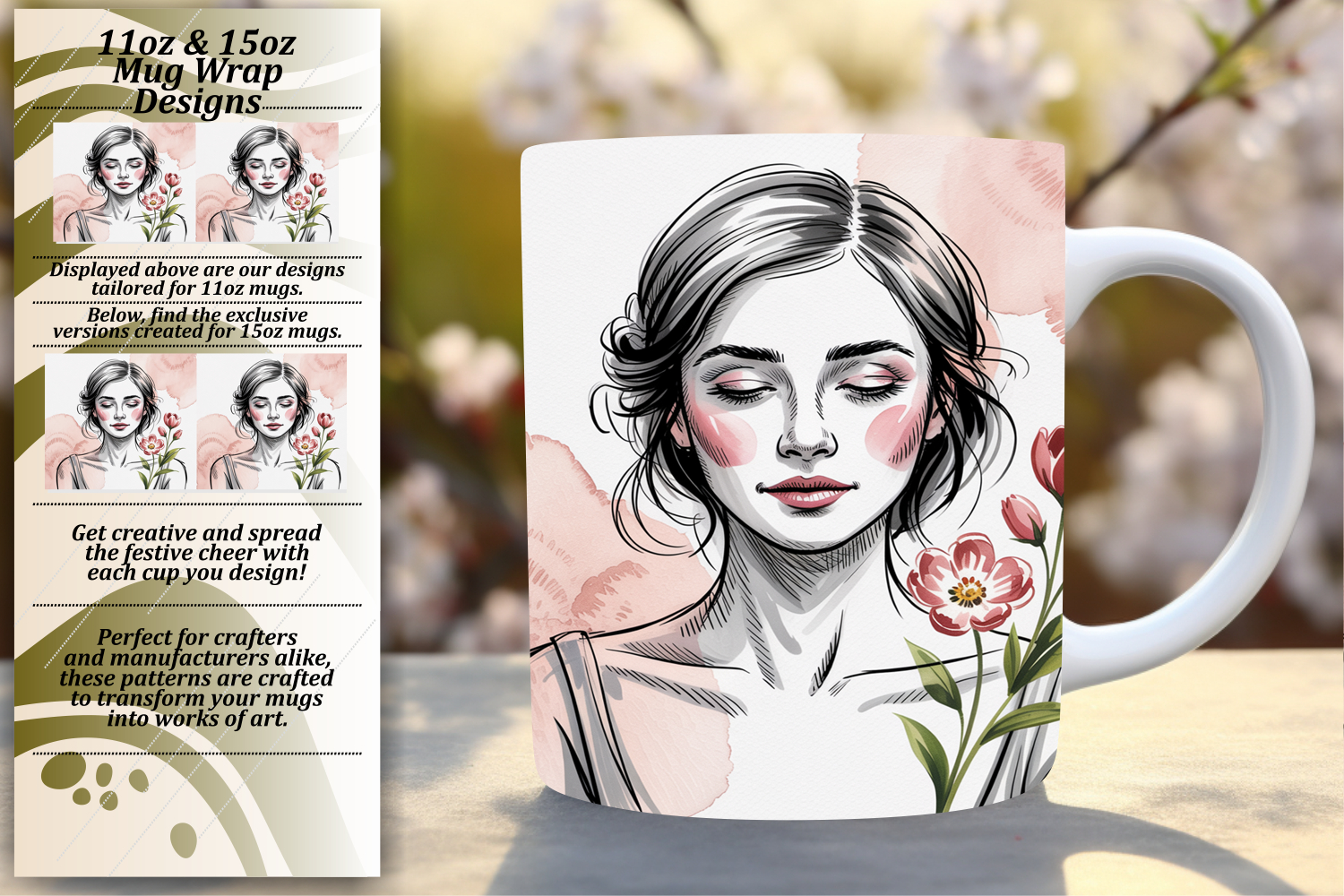 Stunning 15oz Png Mug Wrap Design , Beauty Woman