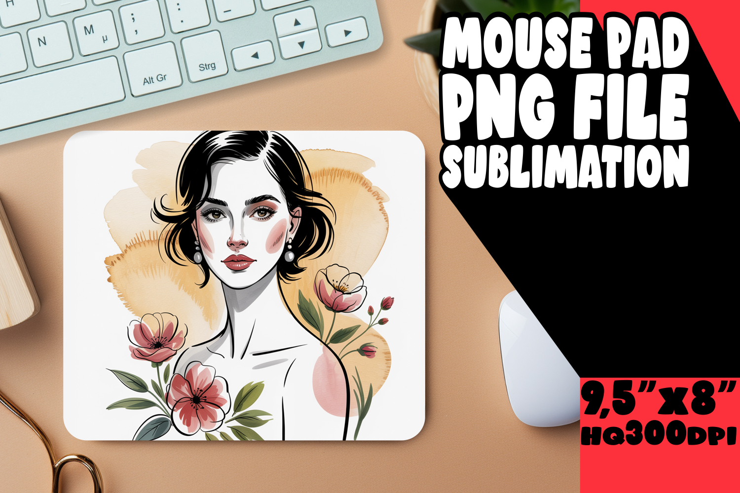 Joyful Mouse Mat Designs for Kids, Beauty Woman example image 1