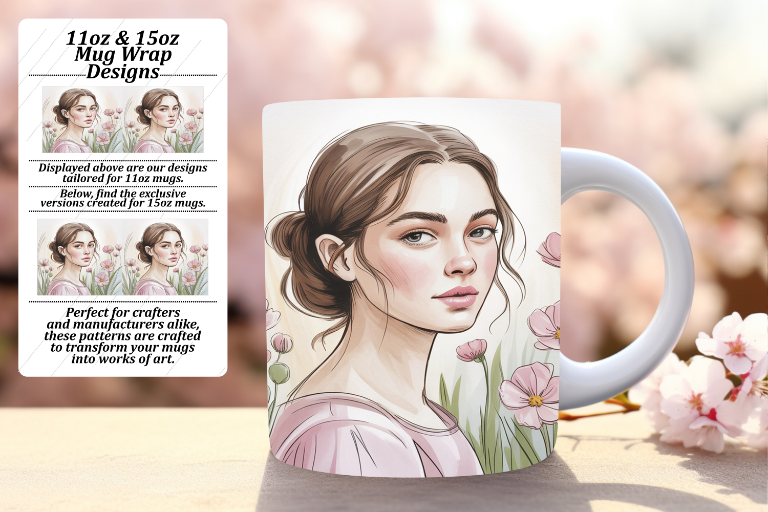 Sleek 11oz Mug Wrap Png Design , Beauty Woman example image 1