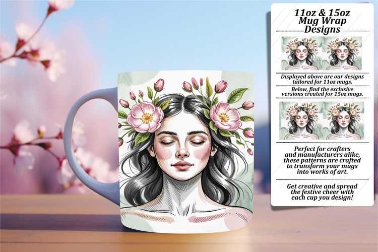 Graceful 11oz Mug Wrap Png Template , Beauty Woman example image 1