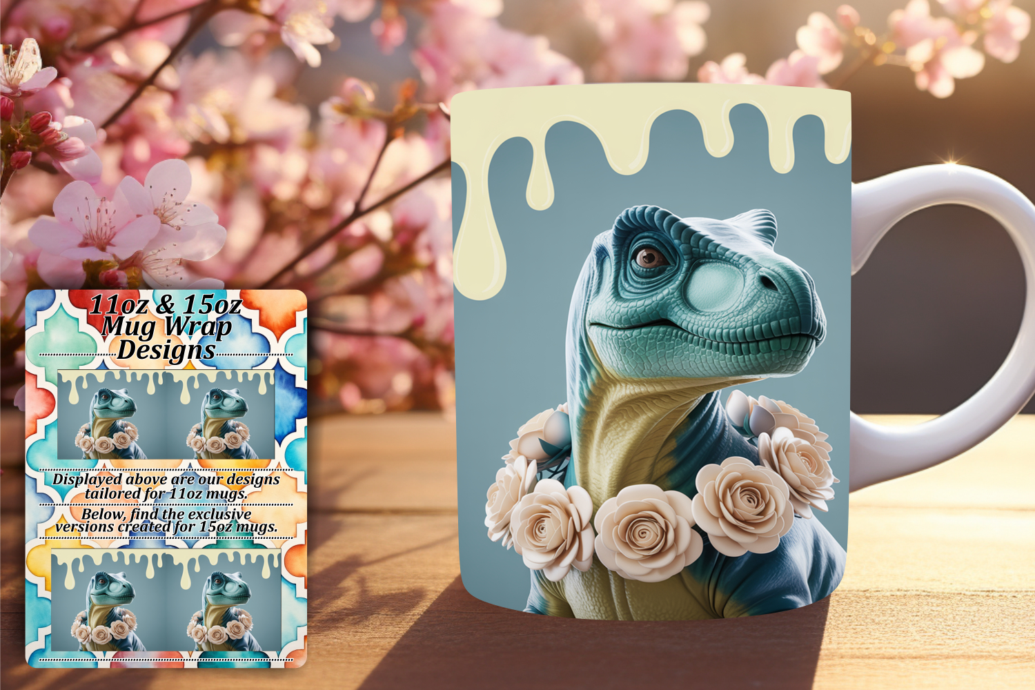 Creative 11oz Mug Wrap Png Design , Cute Dino