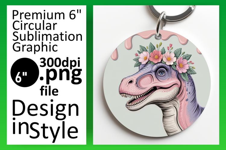 Gorgeous Keychain Circle Design PNG , Cute Dino example image 1