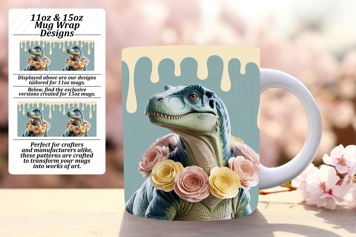 Artistic 15oz Mug Wrap Png Design , Cute Dino example image 1