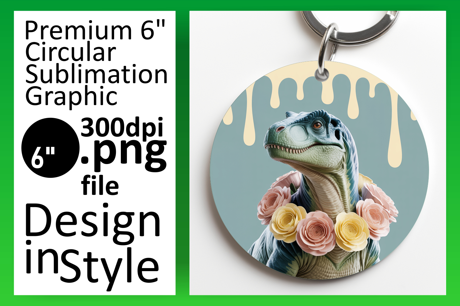 Elegant Keychain Round Design Template , Cute Dino example image 1