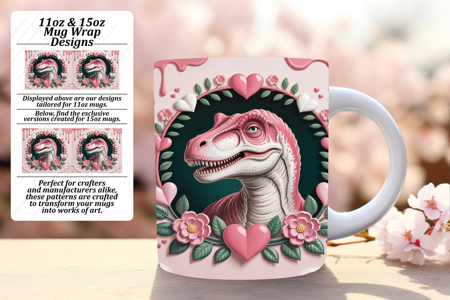 Elegant 15oz Mug Wrap Png Artwork , Cute Dino
