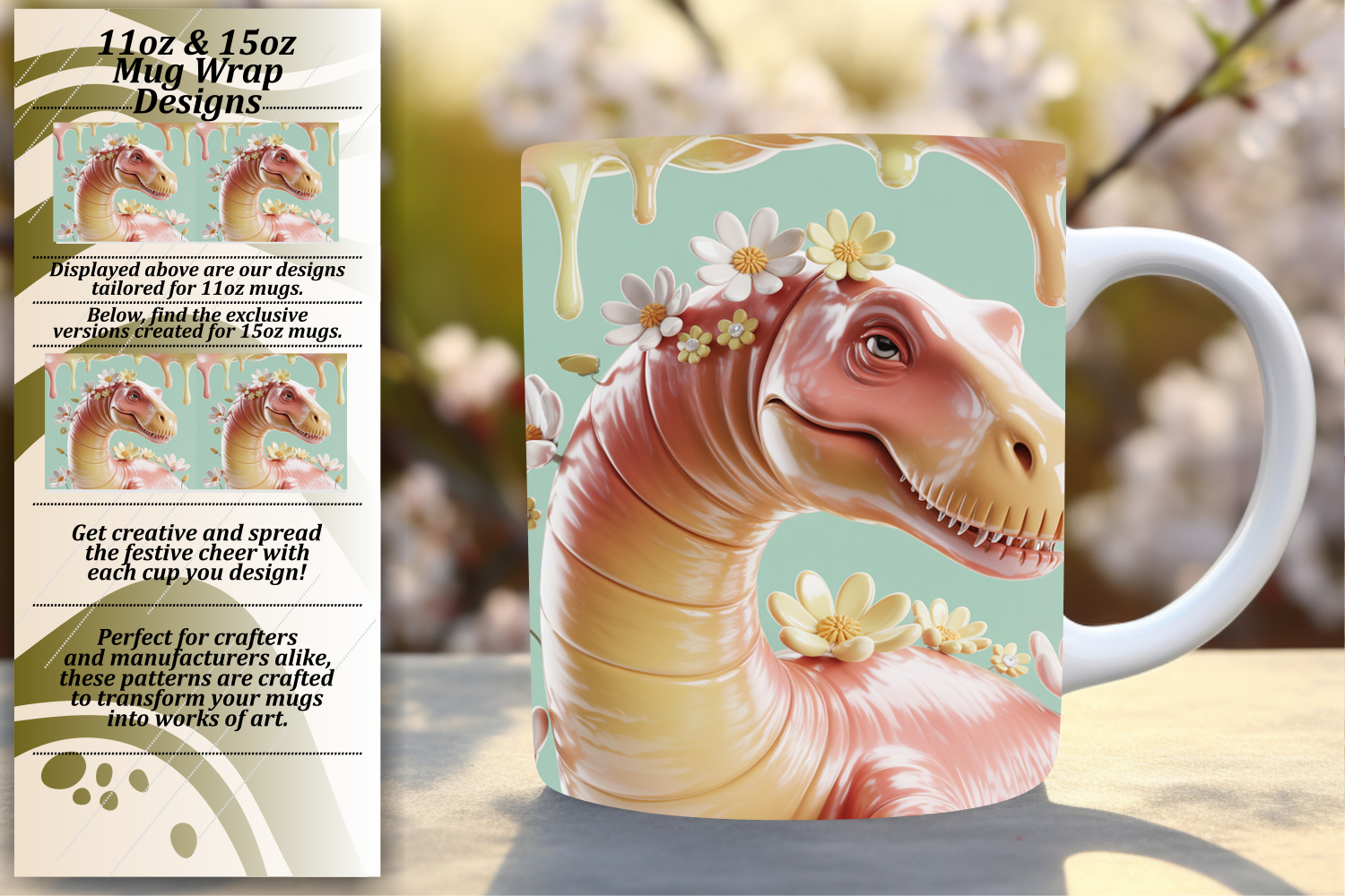 Fresh 11oz Mug Wrap Png Artwork , Cute Dino