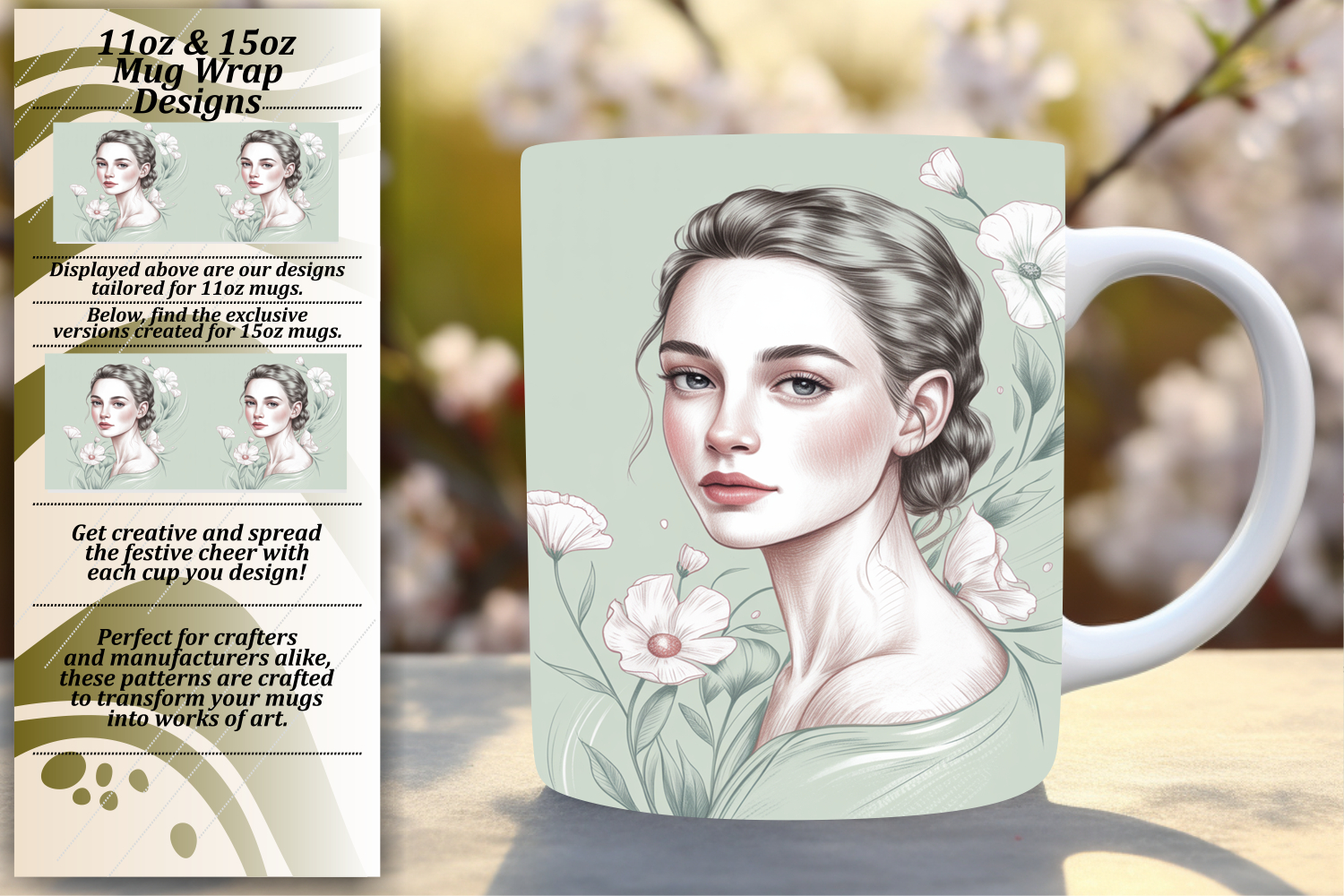 Stylish 11oz Mug Wrap Png Design , Beauty Woman example image 1