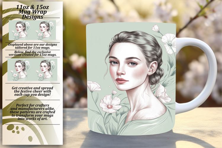 Stylish 11oz Mug Wrap Png Design , Beauty Woman