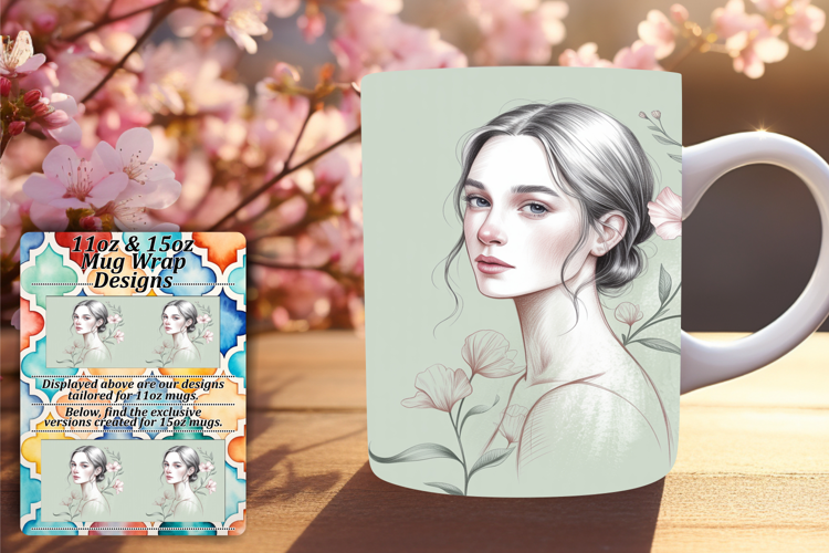 Similar Design Products to Floral 11oz Mug Wrap Png Template , Beauty Woman