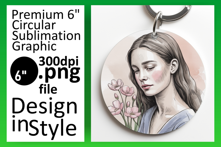 Dynamic Keychain Circle Design Artwork , Beauty Woman example image 1