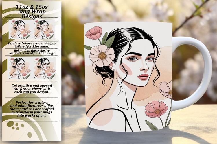 Sweet 15oz Mug Wrap Png Design , Beauty Woman example image 1