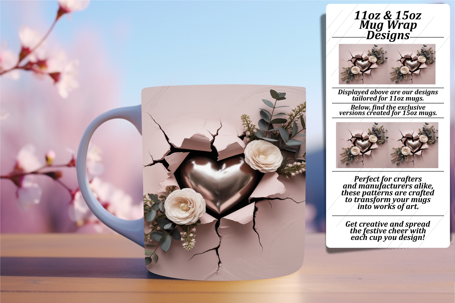 Creative 11oz Mug Wrap Png Artwork , 3D Heart example image 1