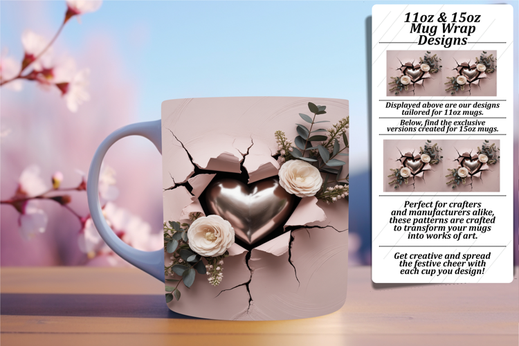 Similar Design Products to Creative 11oz Mug Wrap Png Artwork , 3D Heart