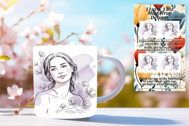 Chic 15oz Mug Wrap Png Design , Beauty Woman example image 1
