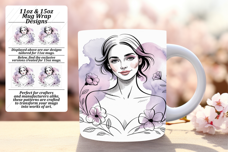 Elegant 15oz Mug Wrap Png Template , Beauty Woman