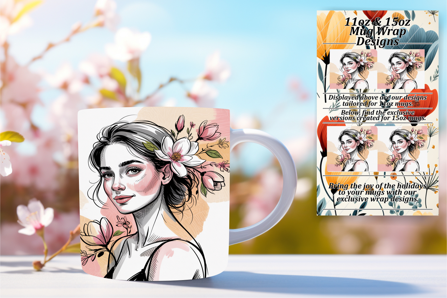 Lovely 15oz Mug Wrap Png Template , Beauty Woman example image 1