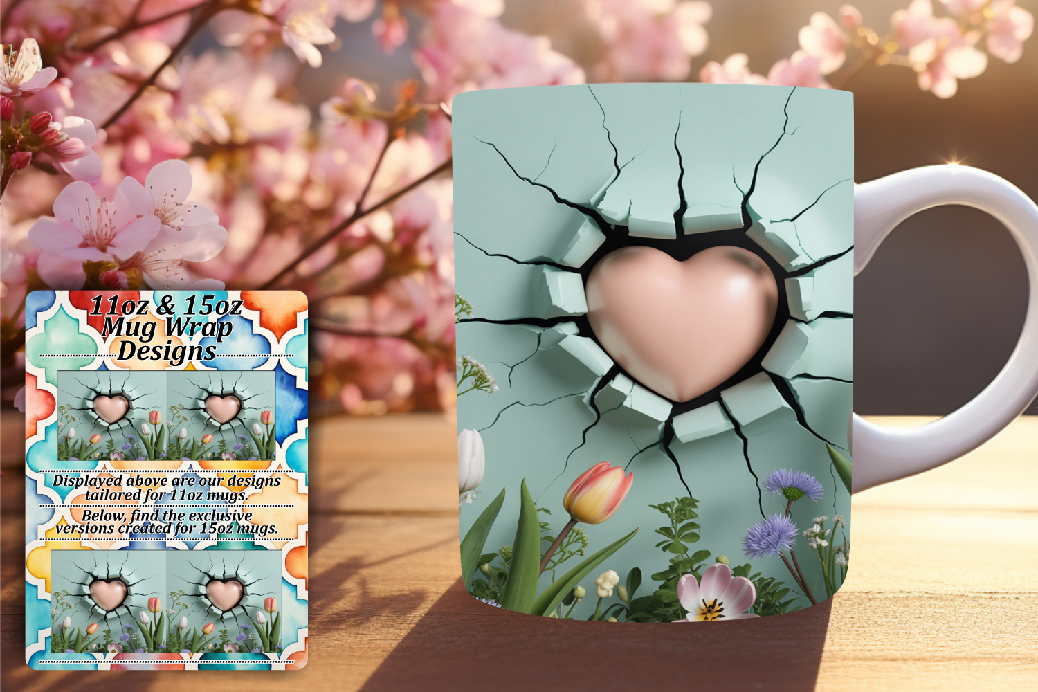 LUSH 15oz PNG Mug Wrap Template , 3D Heart example image 1