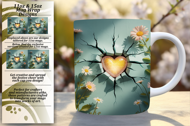 BEAUTIFUL 15oz Mug Wrap PNG , 3D Heart example image 1