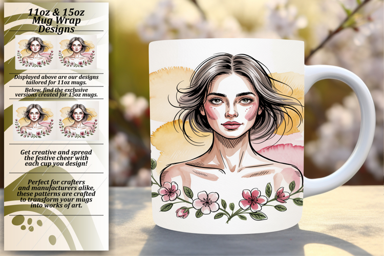 Stunning 11oz Mug Wrap Png Artwork , Beauty Woman