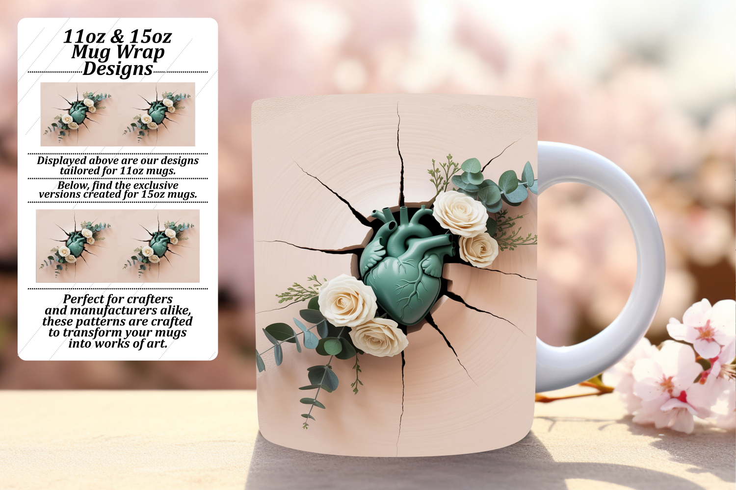 Radiant 15oz Mug Wrap Png Design , 3D Heart