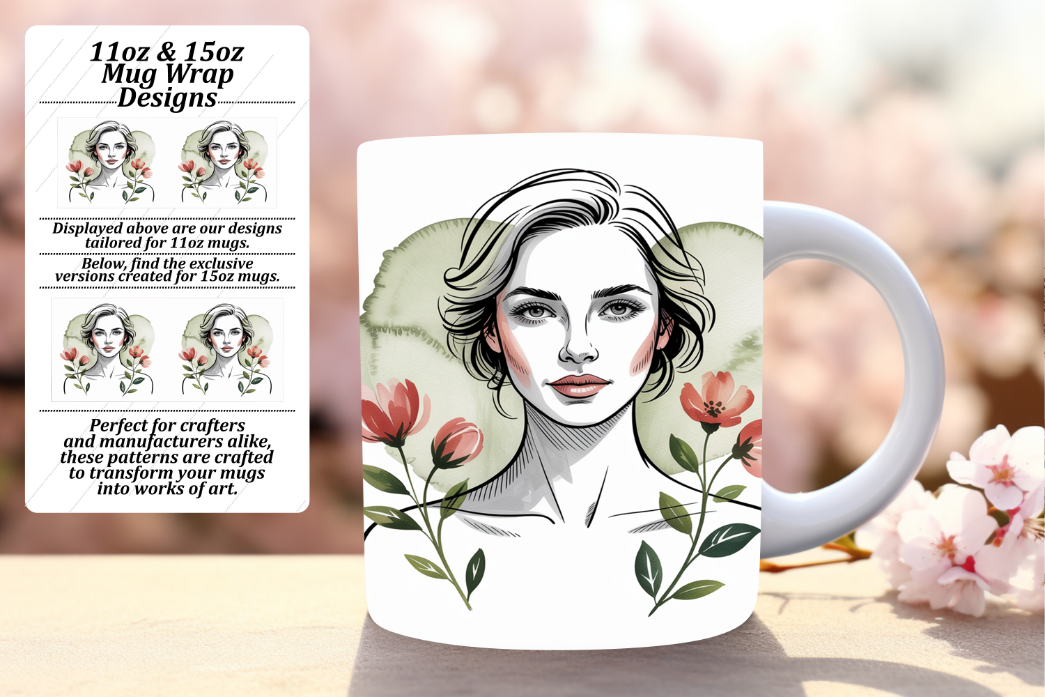 Charming 11oz Mug Wrap Png Artwork , Beauty Woman