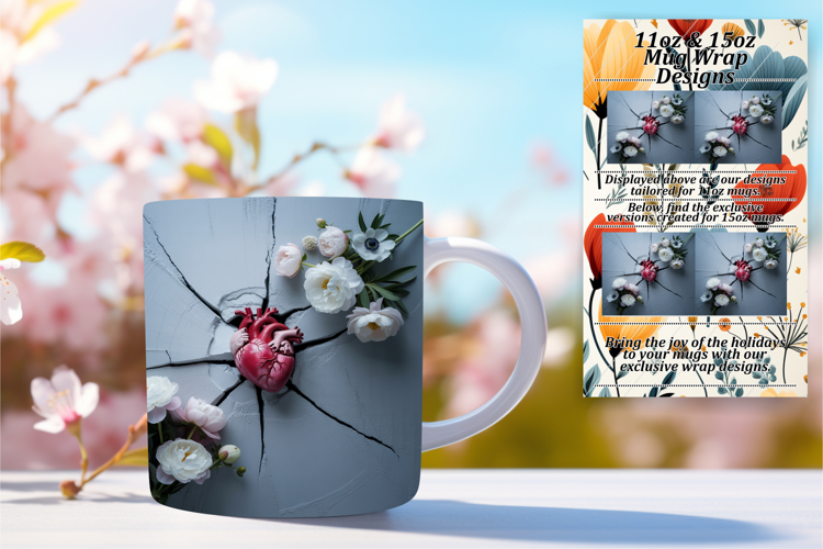 Similar Design Products to Trendy 11oz Mug Wrap Png Template , 3D Heart