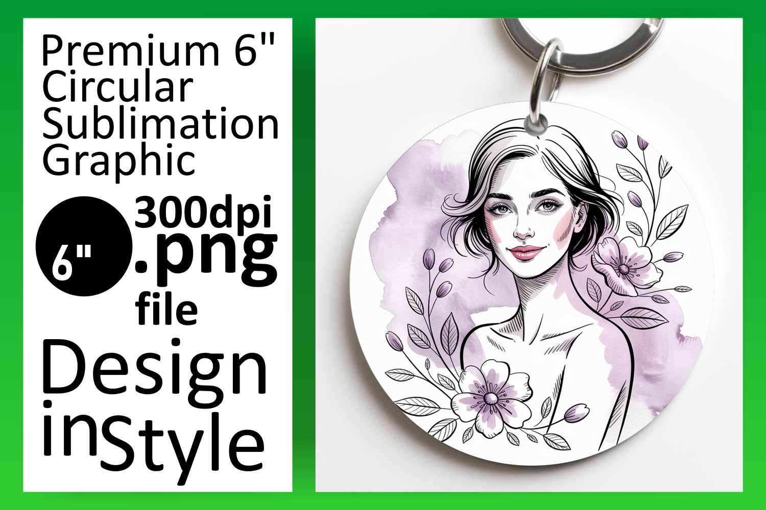Chic Round Design Keychain Artwork , Beauty Woman example image 1