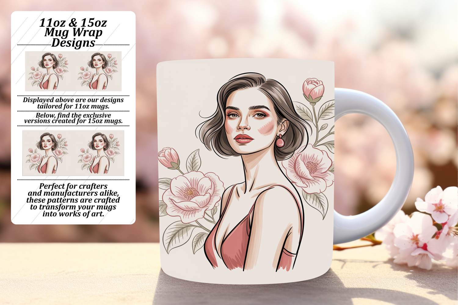 Bright 11oz Mug Wrap Png Design , Beauty Woman example image 1