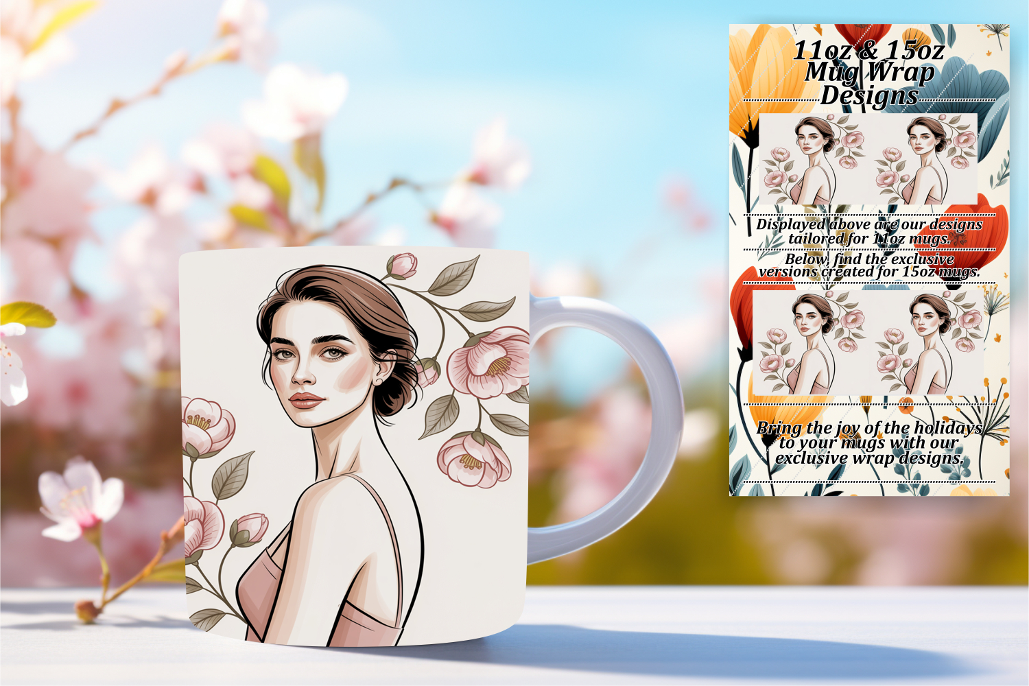 Lovely 15oz Mug Wrap Png Design , Beauty Woman
