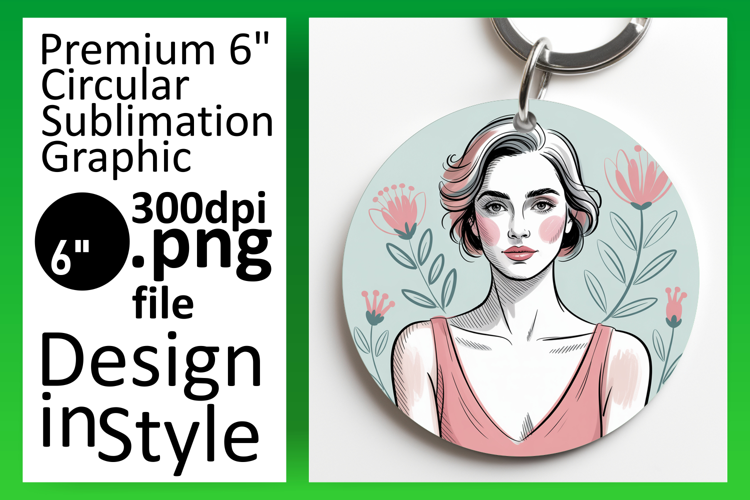 Charming Keychain Round Design Template , Beauty Woman example image 1