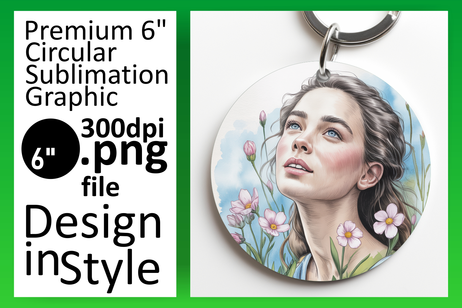 Elegant Round Design Keychain Template , Beauty Woman example image 1