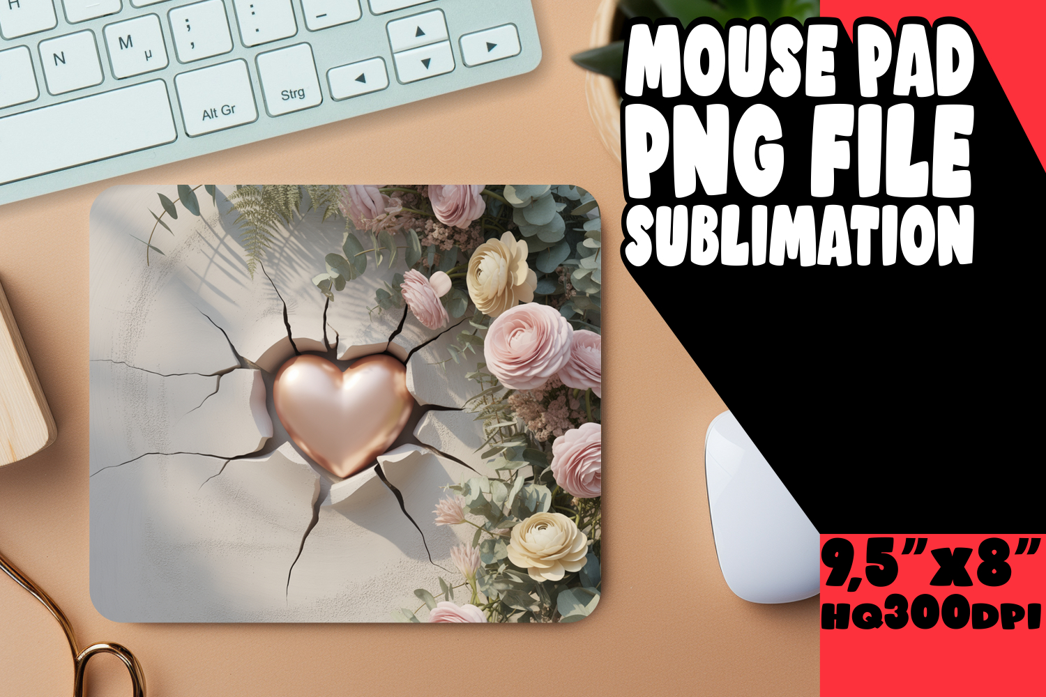 Cheerful Mouse Pad Sublimation PNG, 3D Heart