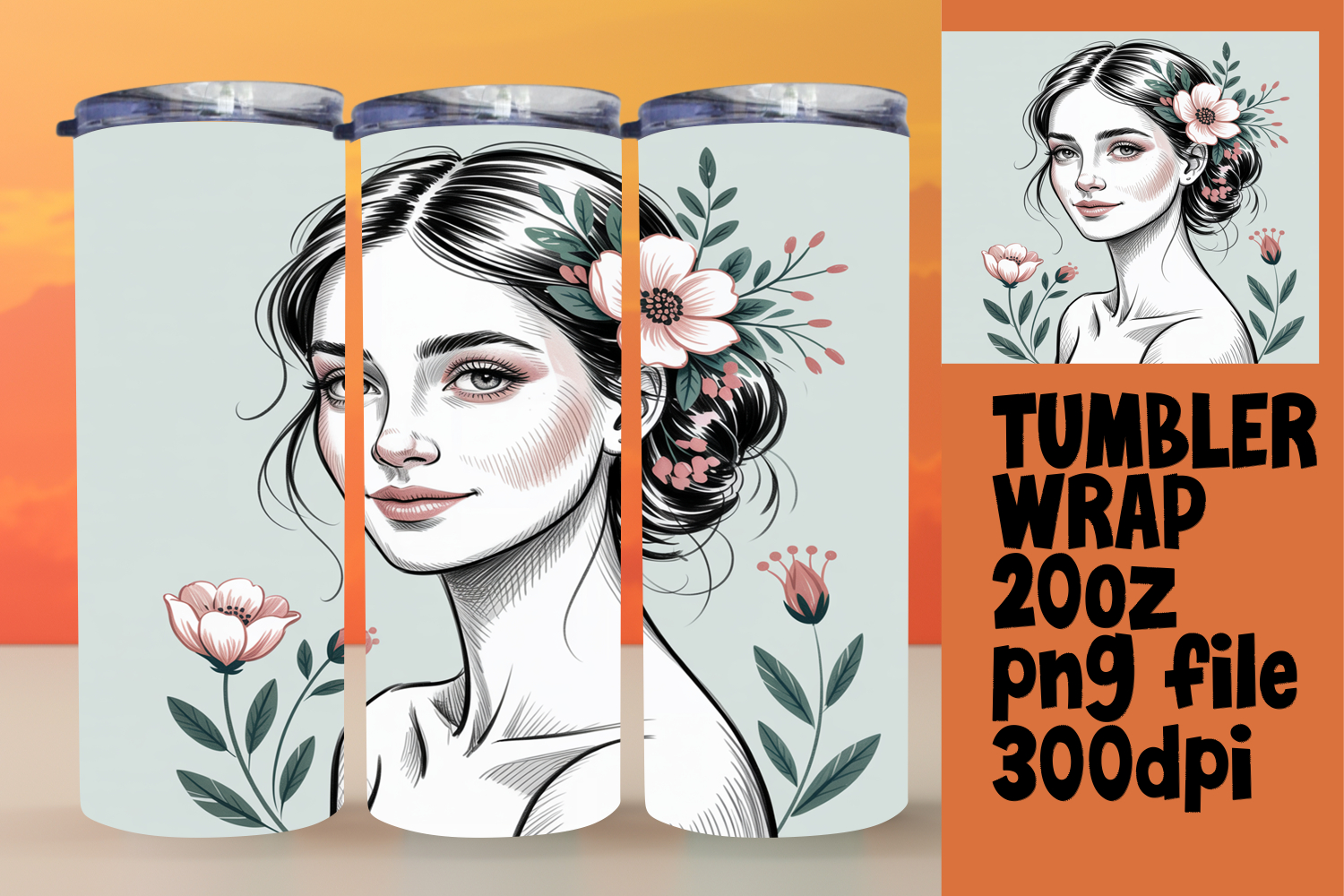 ARTISTIC 20oz Tumbler Wrap for Custom Gifts , Beauty Woman