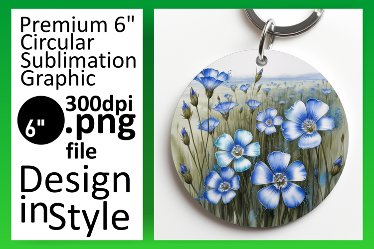 Whimsical Circle Design Keychain Template , Flowers example image 1