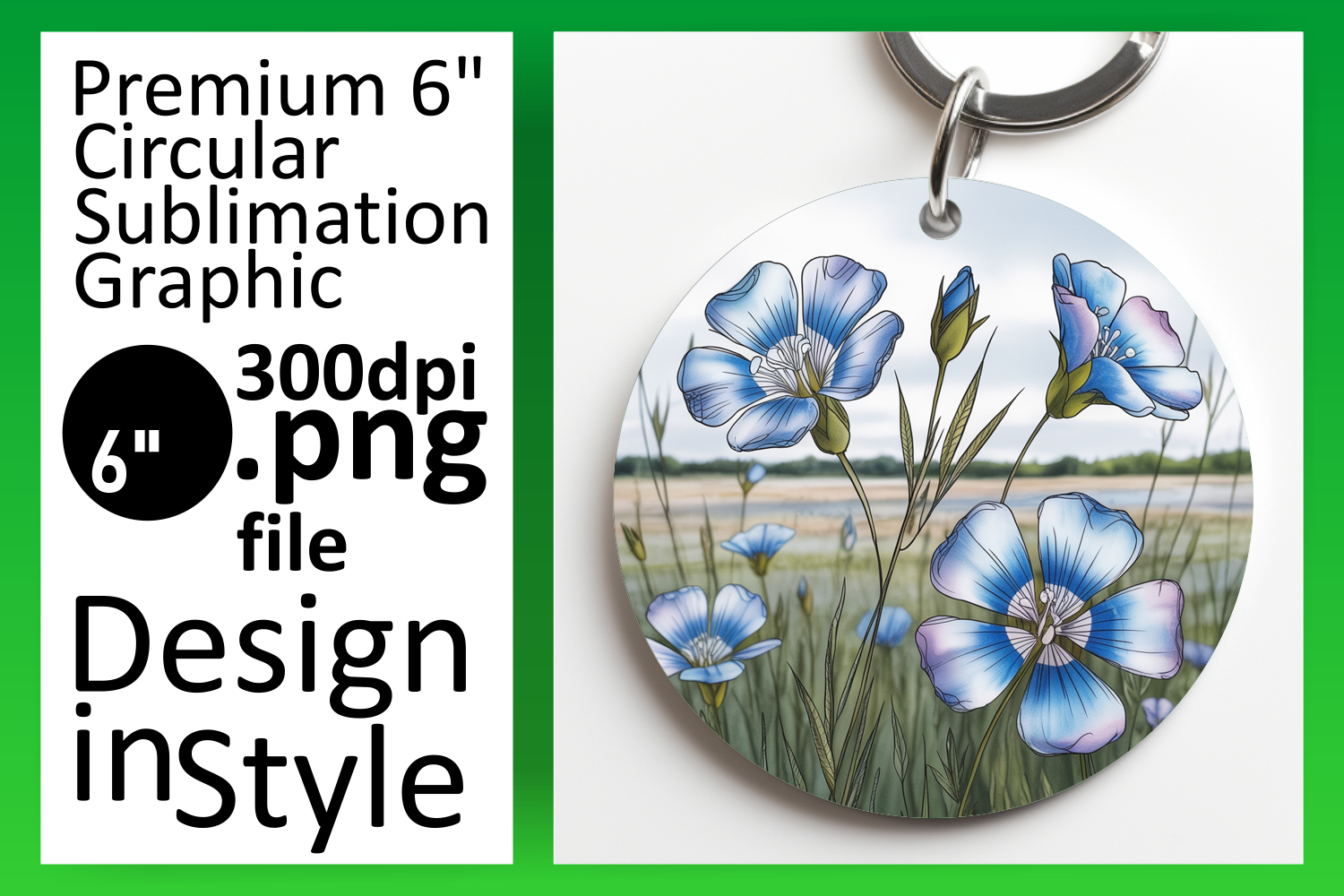 Creative Circle PNG Keychain Design , Flowers example image 1