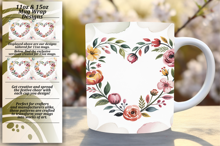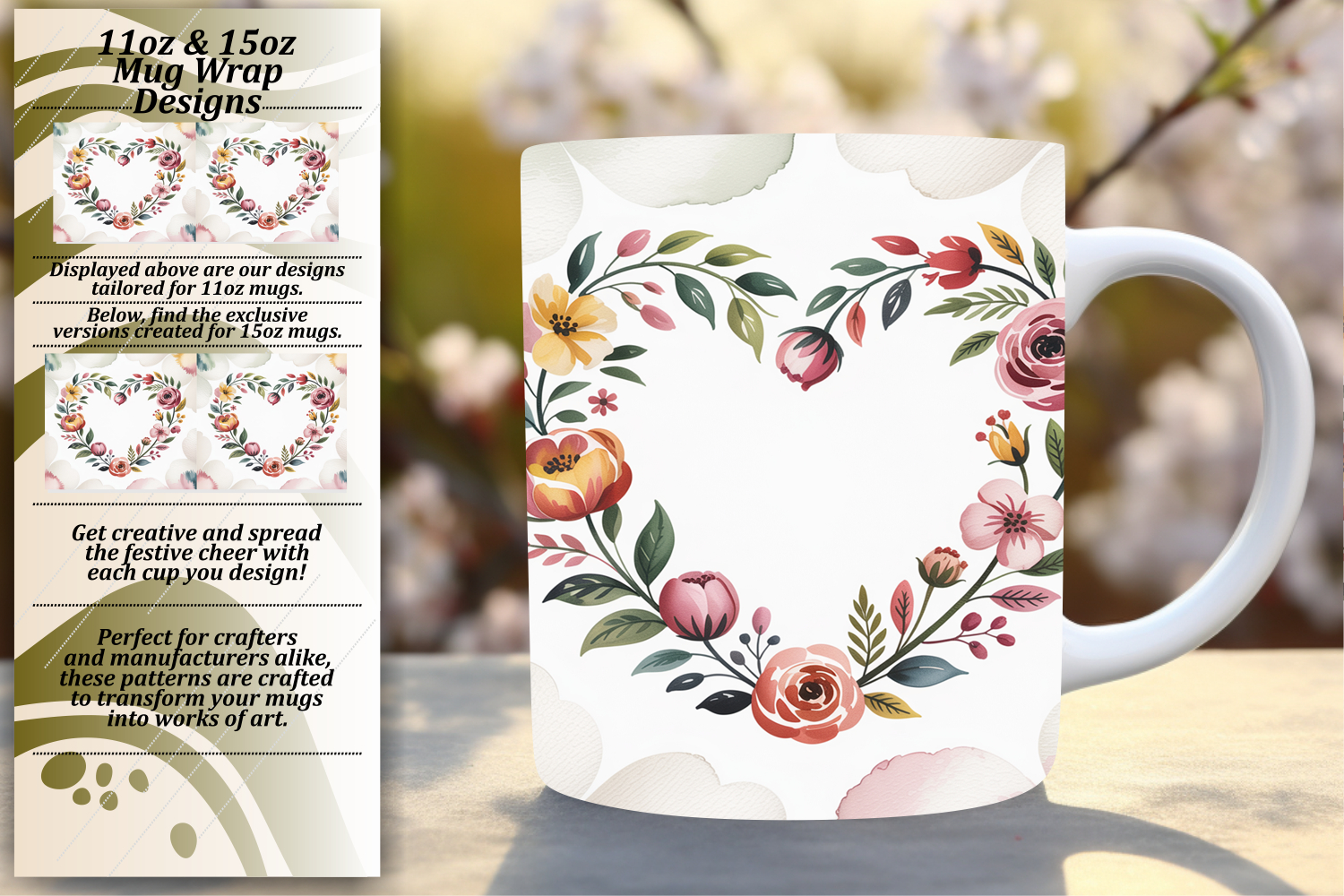 RICH 11oz Mug Wrap PNG Design , Flowers Heart example image 1