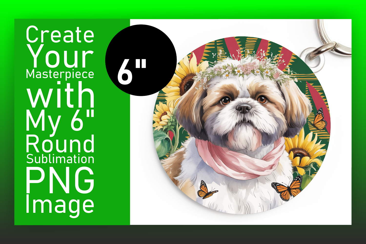 Round Ornaments Watercolor Dog Sublimation Design Sublimation Printing Flower Sublimation Car Coaster Dog Sublimation Design Keychain Sublimation Keychain Sublimation Design Dog Breeds Png