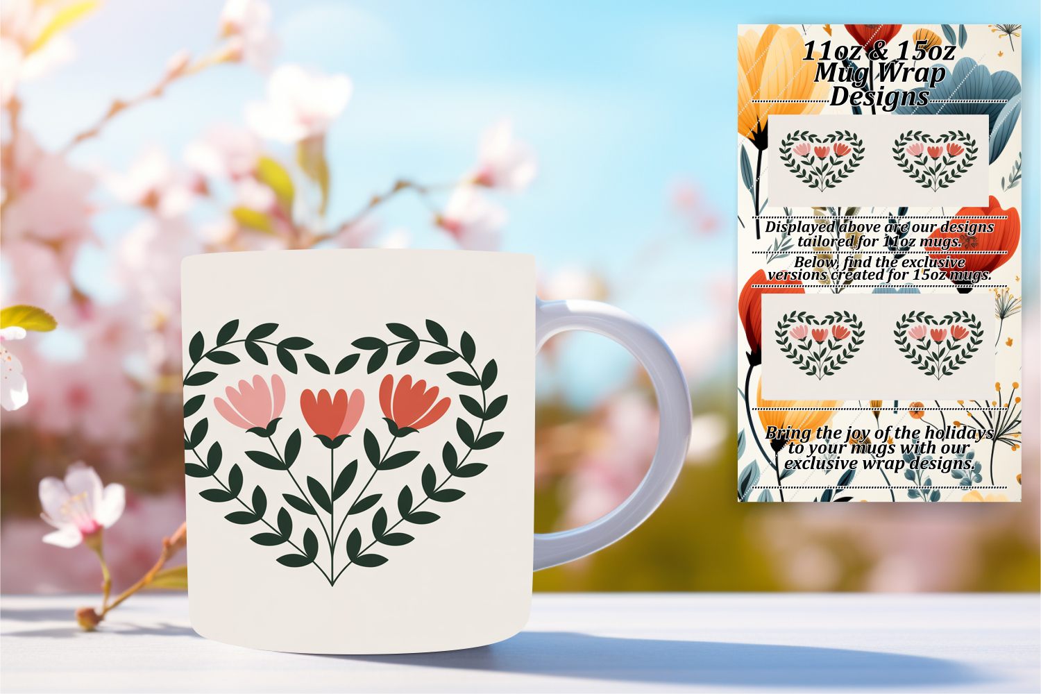 Gift 11oz Mug Wrap Png Design , Flowers Heart example image 1