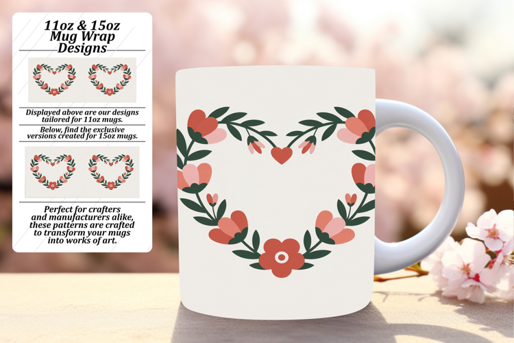 Similar Design Products to Sublimation 15oz Mug Wrap Png Template , Flowers Heart