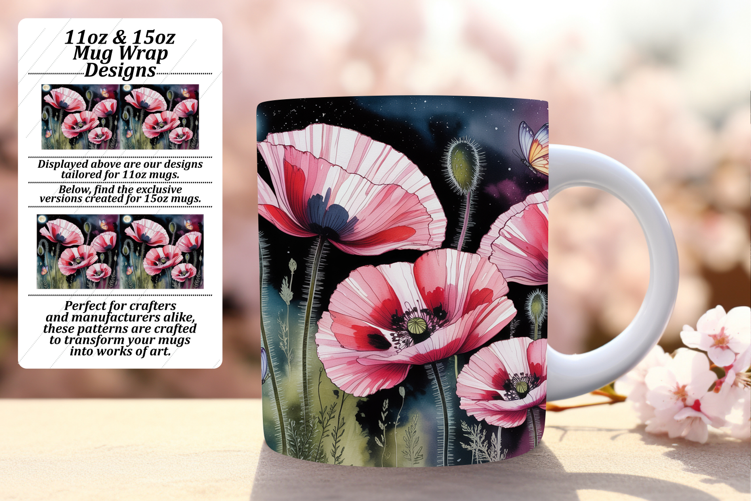 Fresh 11oz Mug Wrap Png Artwork , Flowers