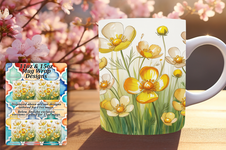 Trendy 15oz Mug Wrap Png Template , Flowers