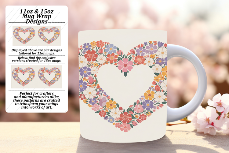 Luxurious 11oz Mug Wrap Png Design , Flowers Heart example image 1