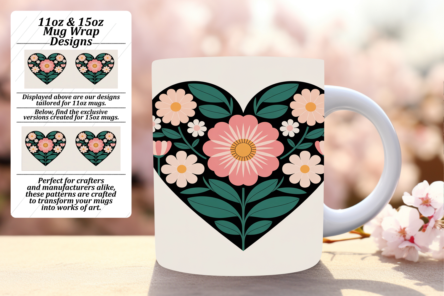 Similar Design Products to Playful 11oz Png Mug Wrap Template , Flowers Heart