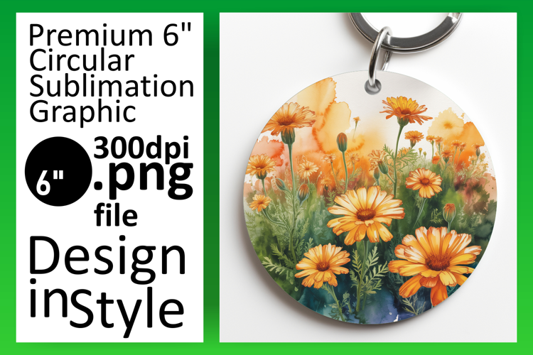 Charming Keychain Circle PNG Artwork , Flowers example image 1