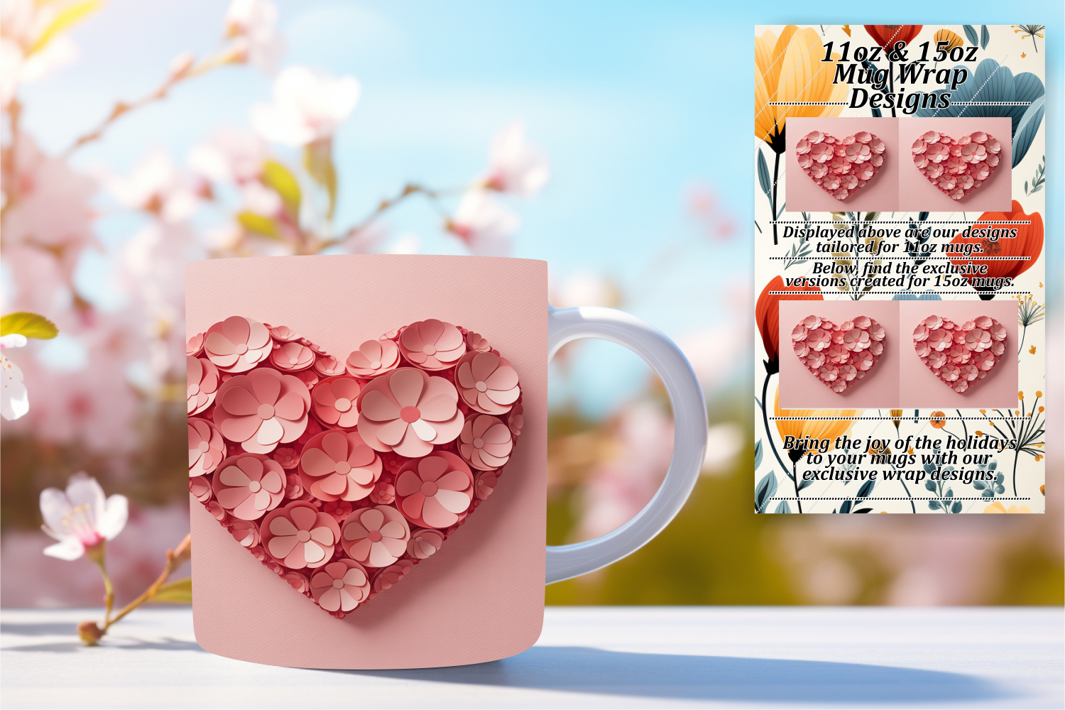 Sophisticated 15oz Mug Wrap Png , Flowers Heart example image 1