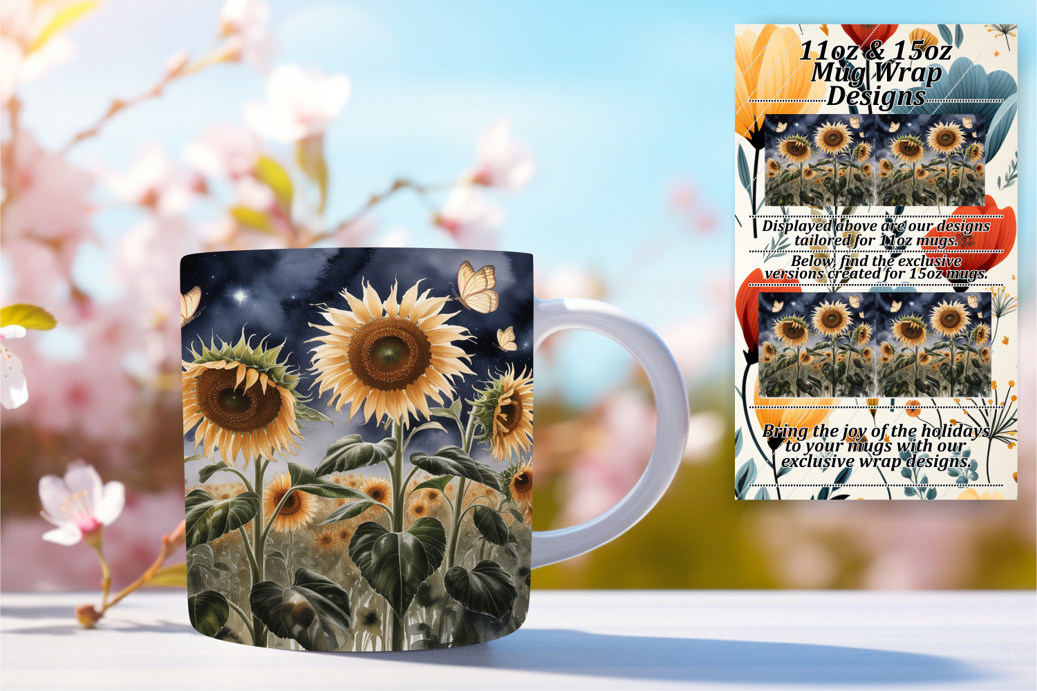 Serene 11oz Mug Wrap Png Design , Flowers