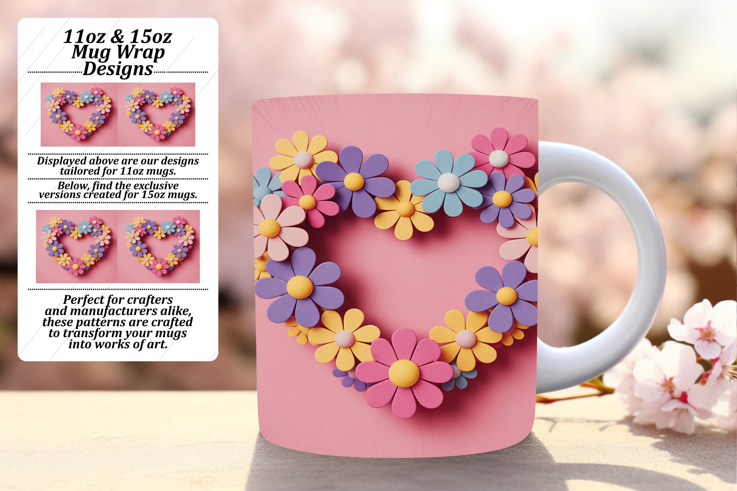 Luxurious 11oz Mug Wrap Png Design , Flowers Heart example image 1