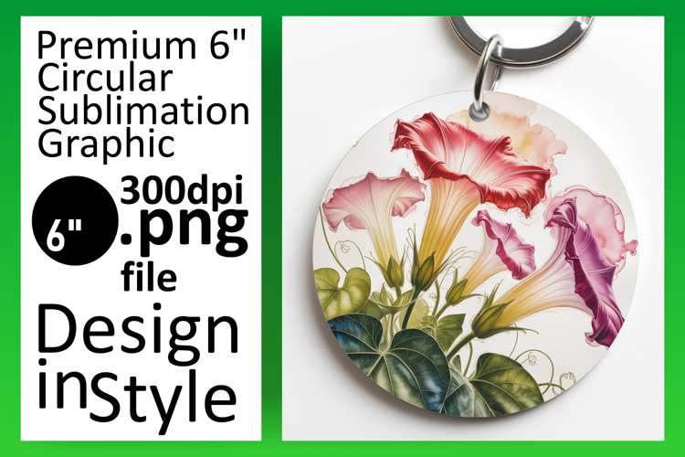 Elegant Circle PNG Keychain Design , Flowers example image 1